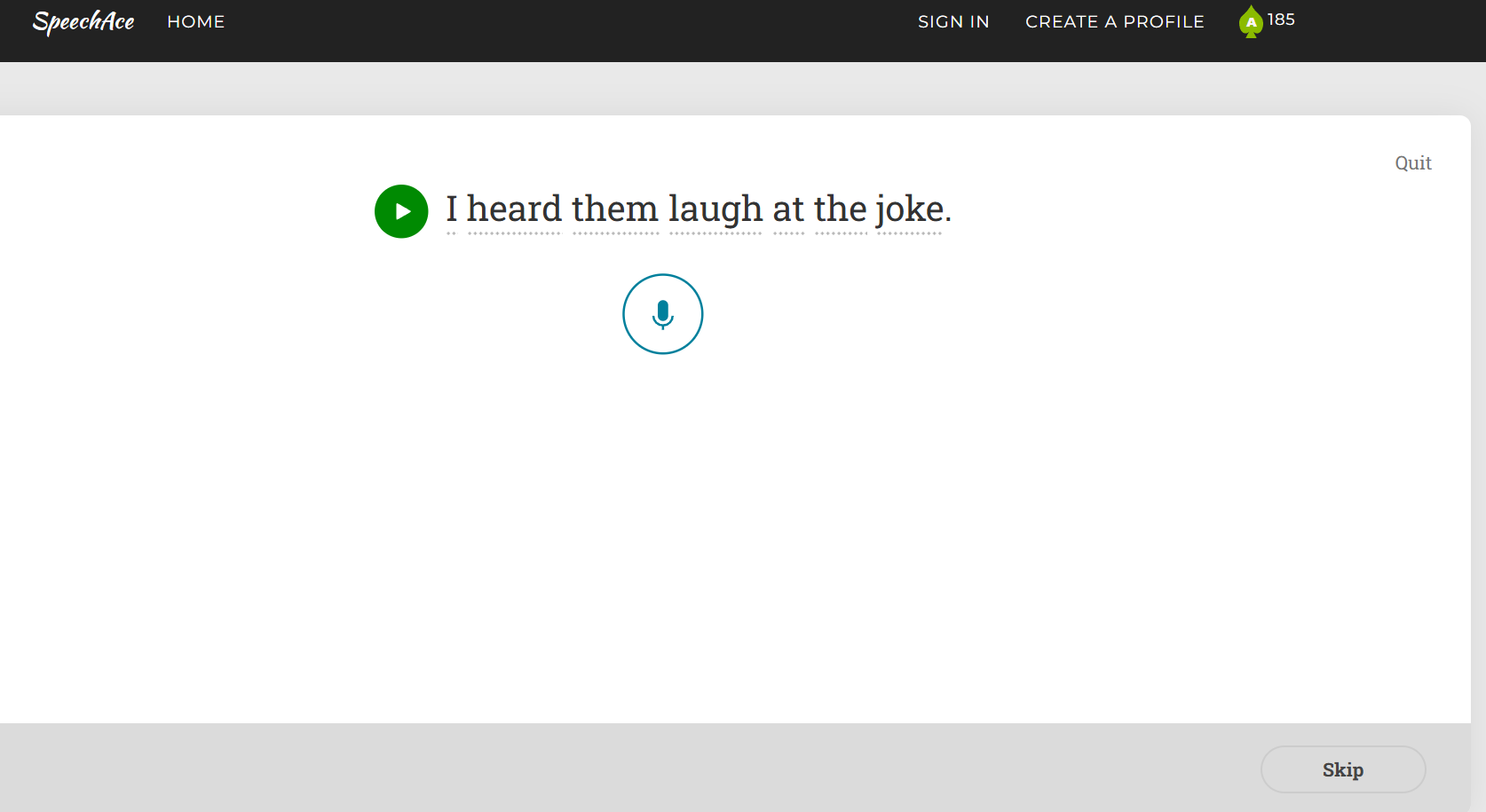 همینطور که توی تصویر مشخصه این سایت مهارت درست تلفظ کلمات و جملات رو بوسیله ارزشیابی و آموزش درست ادای کلمات،تقویت میکنه.