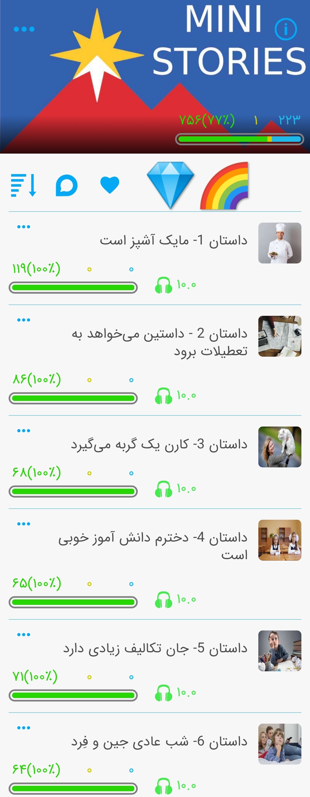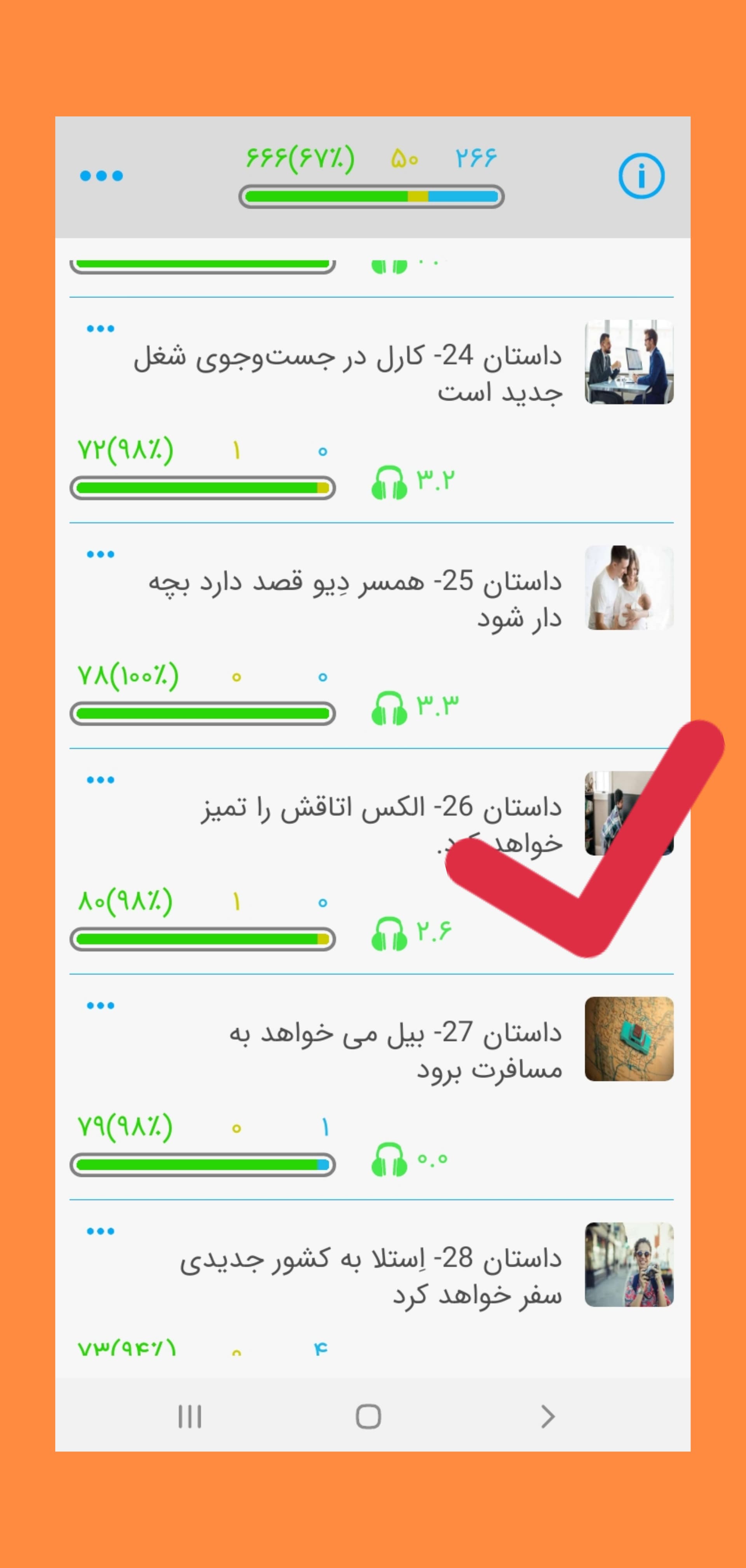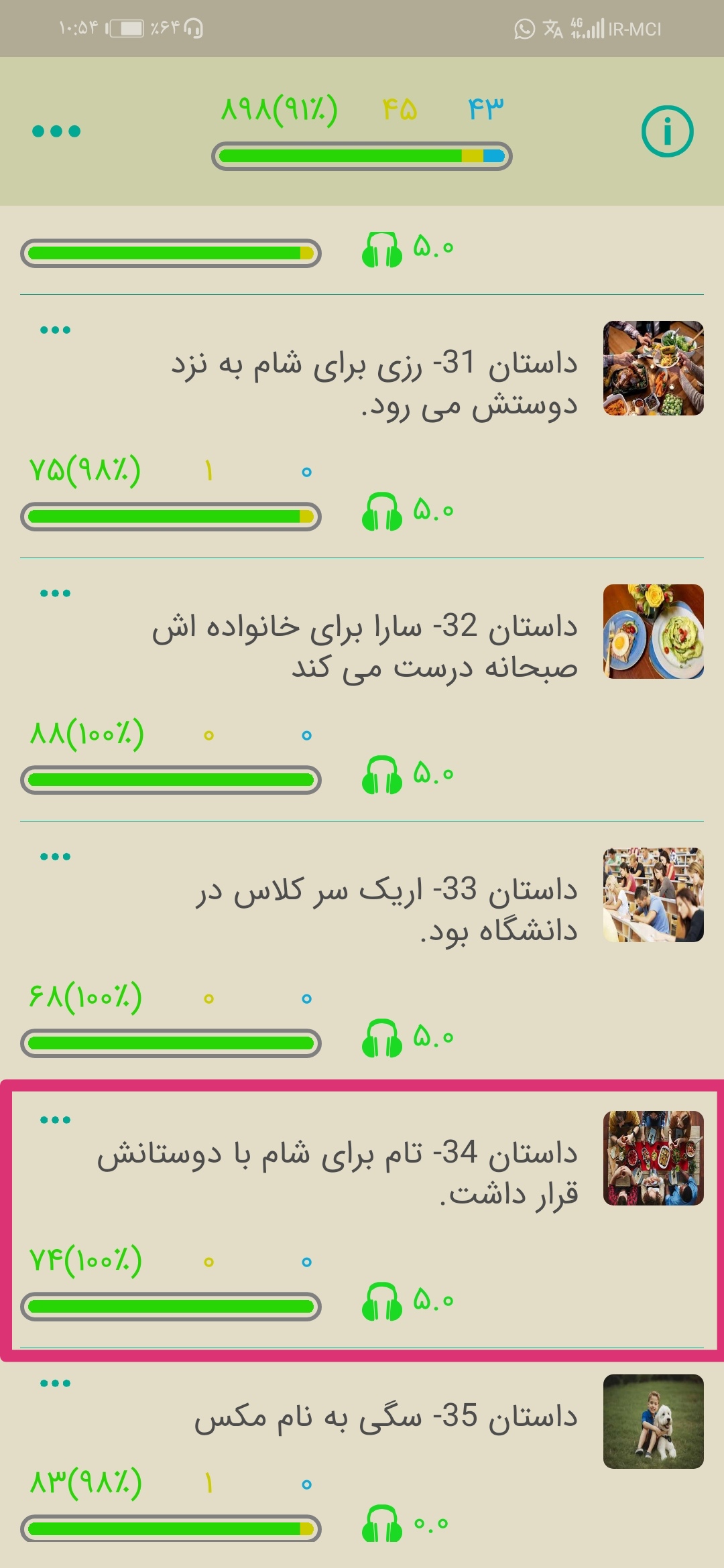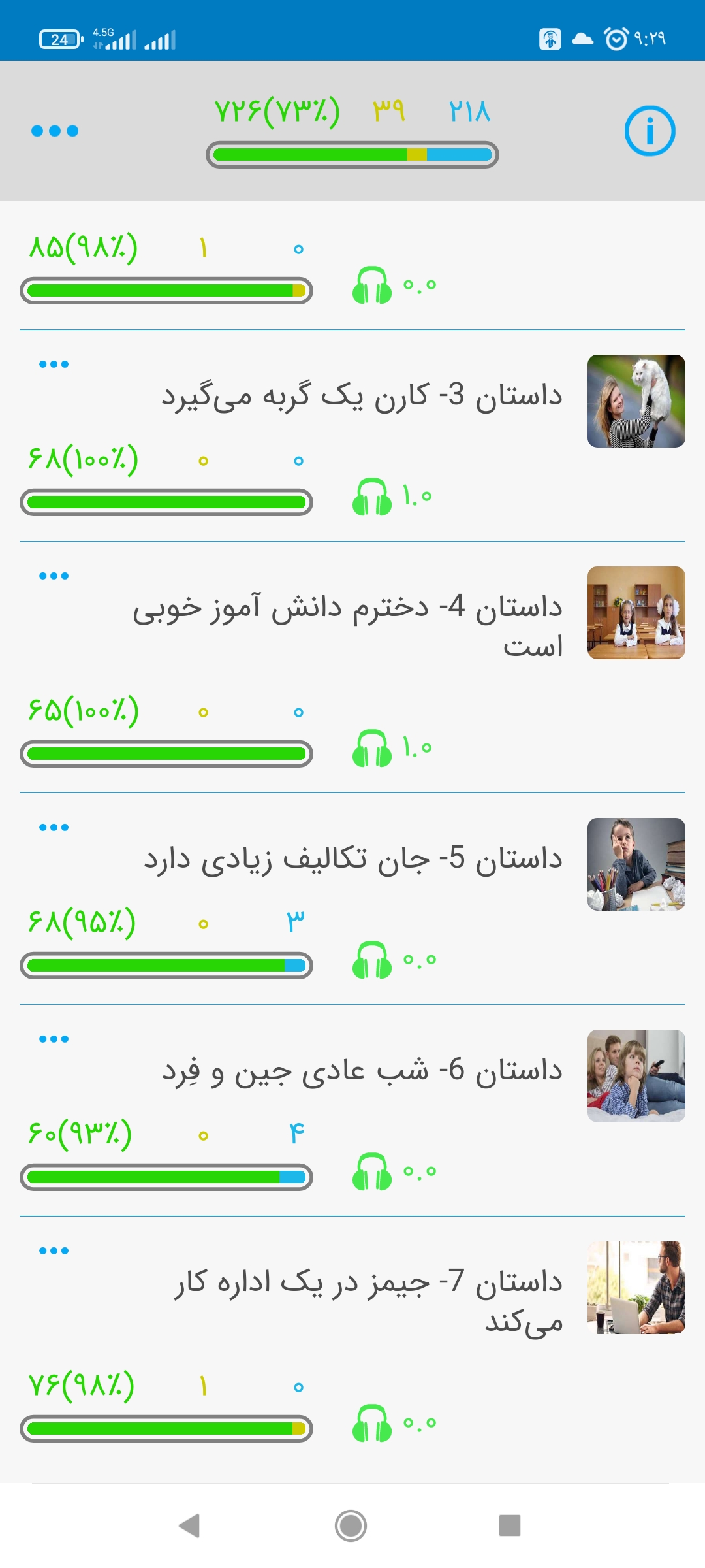 من بعضی داستانها رو چند بار گوش میدم لغاتی که بلد نیستم رو املاش رو تمرین میکنم مینویسم یاد میگیرم بعد یکی دوبار خودم از رو داستان میخونم ضبط میکنم تلفظم رو گوش میدم وقتی تسلطم خوب شد میرم داستان بعدی و هر روز سعی میکنم یه داستان بخونم حالا مگه کاری پیش بیاد