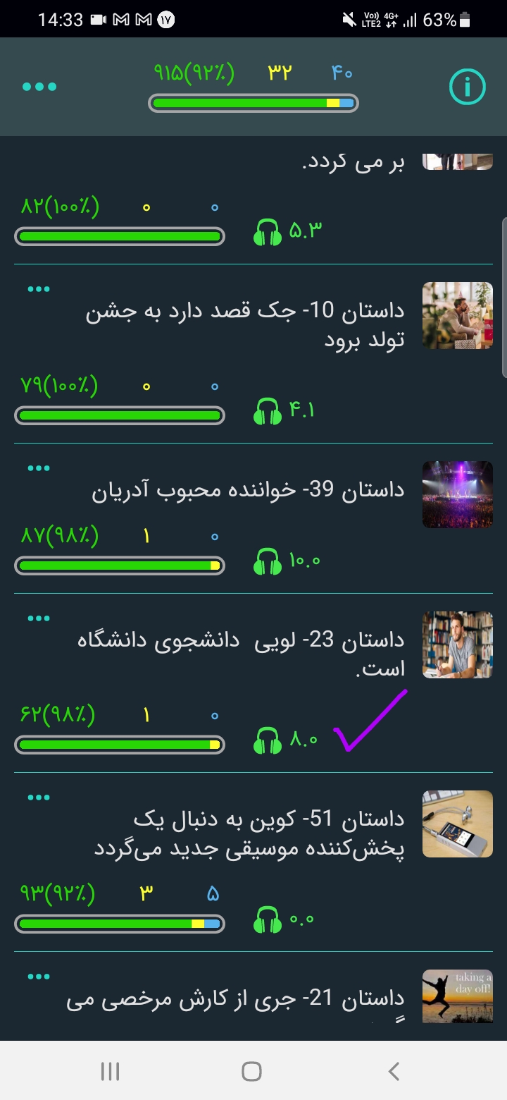ولی بعضی داستانها که لحجه خانومه بریتیشه و من بریتیش خوشم نمیاد، اکثرا یک بار گوش میدم ولی لغاتش رو باز تمرین میکنم و از روی داستان خودم میخونم